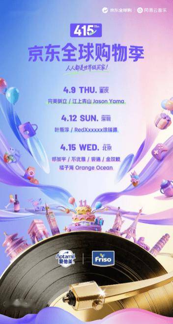 线上钜惠不断,线下精彩同样不容错过。本次京东全球购11周年庆联合网易云音乐打造“唱响城市,畅享全球”系列线日北京三场演出依次开启,完美倒立、江上青山、金玟岐、橘子海等风格各异的音乐人倾情加盟,曲风涵盖indie pop、R&B、摇滚、爵士等多种潮流风格,结合城市气质打造专属音乐体验。消费者参与现场打卡活动,还能解锁专属福利,实现音乐体验与全球好物体验的双重享受。