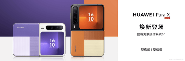 HUAWEI Pura X推出型格紫和型格橙两款全新配色,延续Pura系列先锋设计基因,采用三种素皮无缝拼接工艺,色彩鲜活饱满、质感细腻高级。本次HUAWEI Pura X全新配色版本为16GB+512GB标准版,售价7999元,此版本同时配置型格红、零度白、月影灰三种配色。