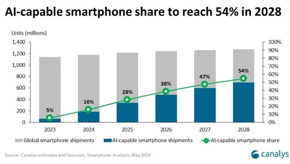 技术条件成熟,应用需求得到验证,AI手机也从概念走向规模化。IDC中国区总裁霍锦洁表示,2024年全球新一代AI手机出货量将达到1.7亿部,占智能手机整体出货量的15%。行业预计2026年全球AI手机渗透率将突破38%。