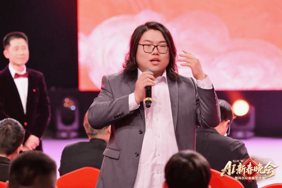共创者是AI新春晚会的主角。1月16日,七八十位共创者从上海、武汉、广州、北京等地赶赴温州,只为参与AI新春晚会录制。当天,温州气温超10℃。录制开场前,头顶飘逸长发、身着正装的AI新春晚会总导演李奕辰开玩笑说:“我相信大家在寒冷的冬天,也感觉到了我们温州人民的温度。”这位1994年出生的辽宁铁岭小伙,也是2024年、2025年民间AI春晚发起人。