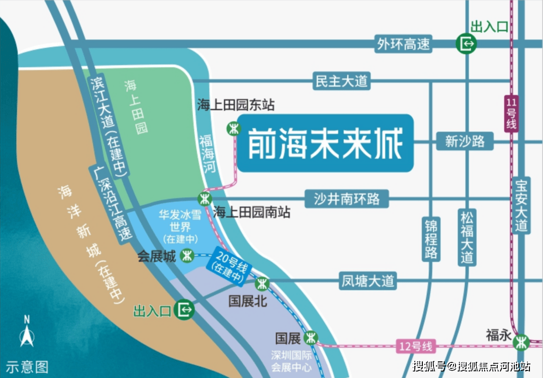 卓越前海未来城,家门口就是12号地铁线“海上田园东站”,一期是最靠近地铁站的,2站到国展北站可以换乘20号线号线,快速通达宝中,南山区。