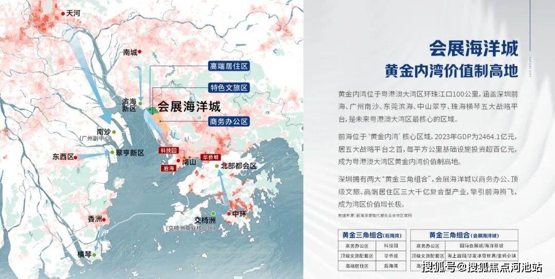 会展海洋城在前海扩三城一港的空间规划;纵观全球,经济制高地必须具备国家产业经济、顶级文旅配套、高端居住大城这三大要素;