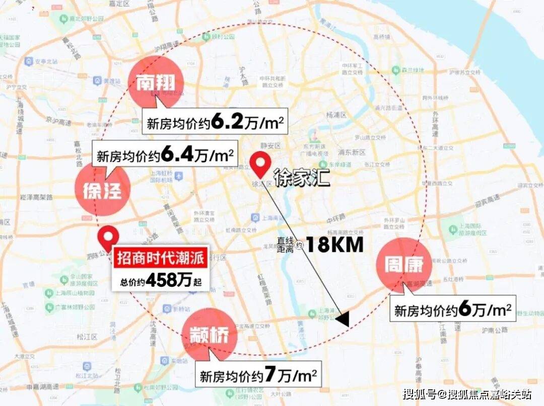 如果以徐家汇副中心为圆点,「招商·时代潮派」虽然与青浦徐泾、嘉定南翔等纬度相同,但是均价却有明显差距。
