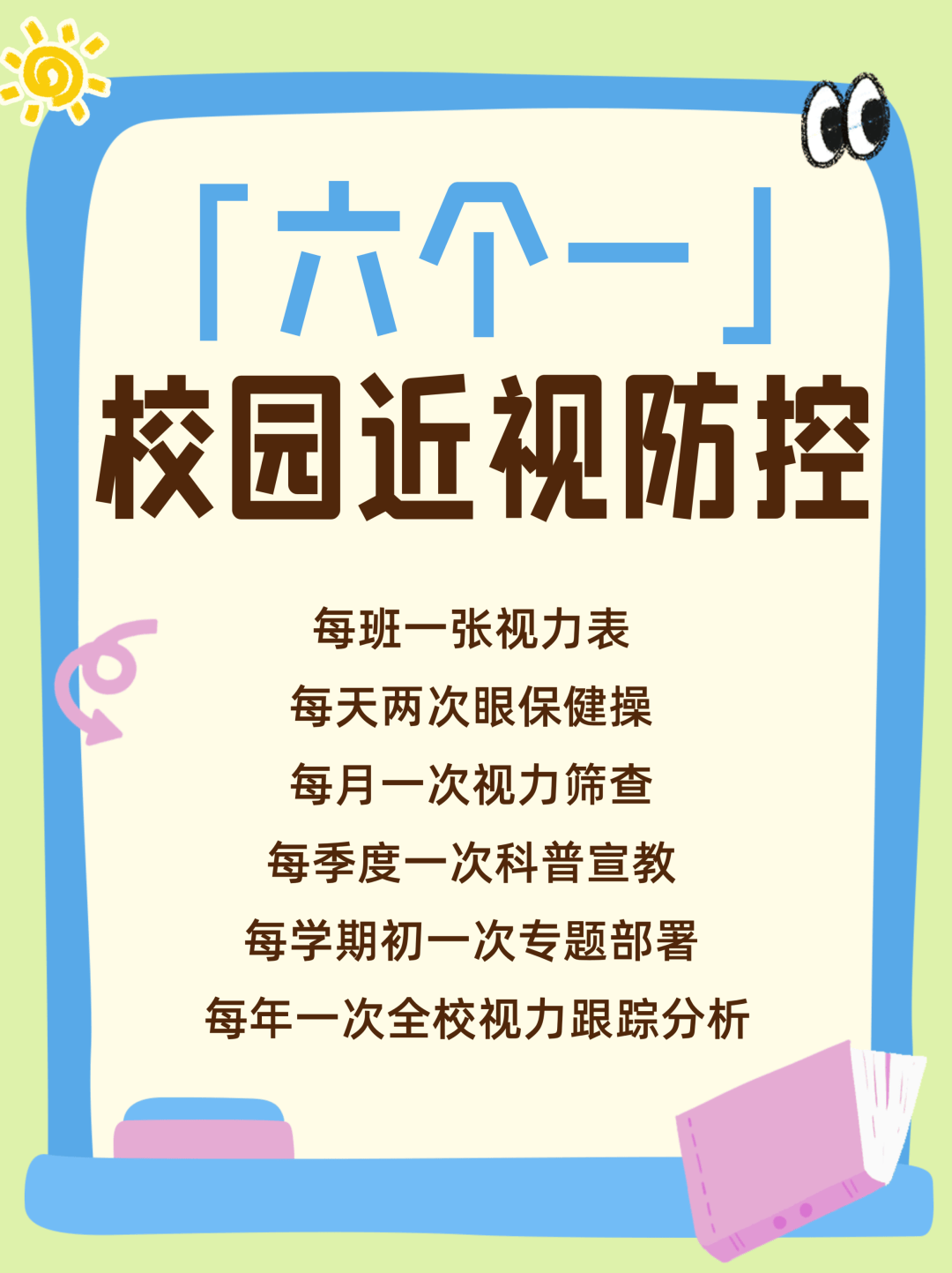 新学期一开学,李沧区就放大招——把近视防控当成学校卫生健康工作的“头等大事”,全面落地“六个一”,全力打造“政府主导、学校主抓、医教携手、家校齐心”的护眼联盟,用系统部署、精准出招、常态推进,为全区儿童青少年的明亮双眼筑起一道“防近视长城”!