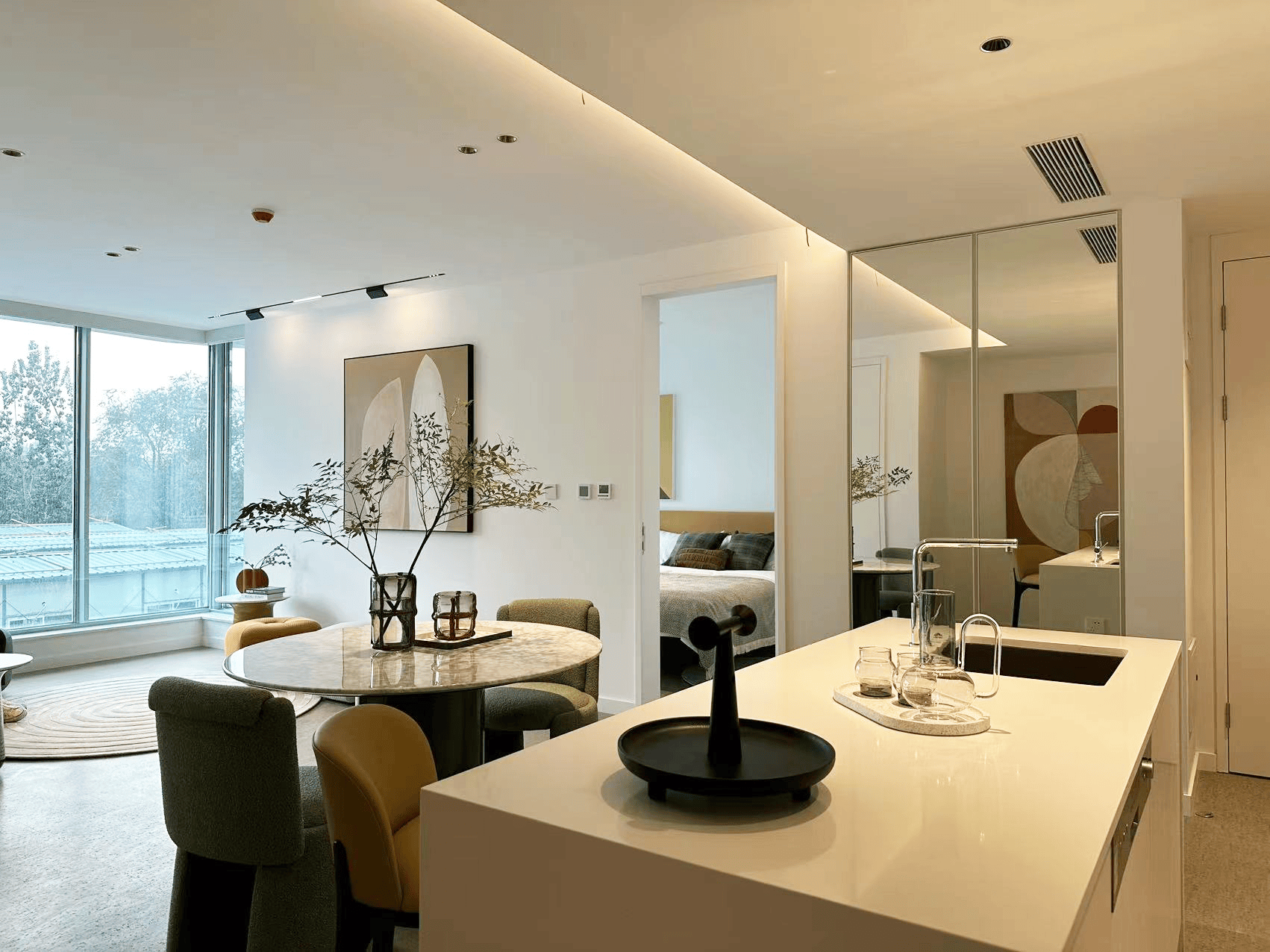 融合活力公寓区、专业护理区、四季美学生活中心及社区医护中心四大业态,提供600余套养老居室、188张养老床位,房型多样,适配不同需求。房间配置直接拉满高端线:正负压户式新风系统、葡萄牙进口软木地板、全景落地窗,中央空调+地暖双供暖,24小时热水+风暖浴霸,全方位保障居住舒适。