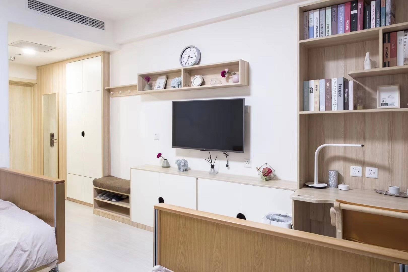 房间设计严格按照老年人住宅标准打造,注重适老化与舒适性,室内宽敞明亮、通风透气,配备防滑地面、扶手、紧急呼叫系统等安全设施,同时配备齐全的生活用具,让老人的居住更加便捷、安全。公寓还配备了完善的保健养生与娱乐休闲设施,设有康复医疗、中医养生、保健按摩、心理咨询、佛教养生、足疗、水疗、美发等保健服务项目,帮助老人调理身体、缓解疲劳、愉悦心情;配套的寿宴厅系列包间、透天中景庭院、阅览室、书法台、手工制作台、棋牌室、茶吧、多功能厅、室内娱乐区等,满足老人餐饮、娱乐、社交、学习等多方面的需求;娱乐区配备的机械乒乓球、电动投篮机、沙狐球、桌球、指弹球等半自动娱乐设施,适合老年人体质,让老人在娱乐中锻炼身心、丰富生活。