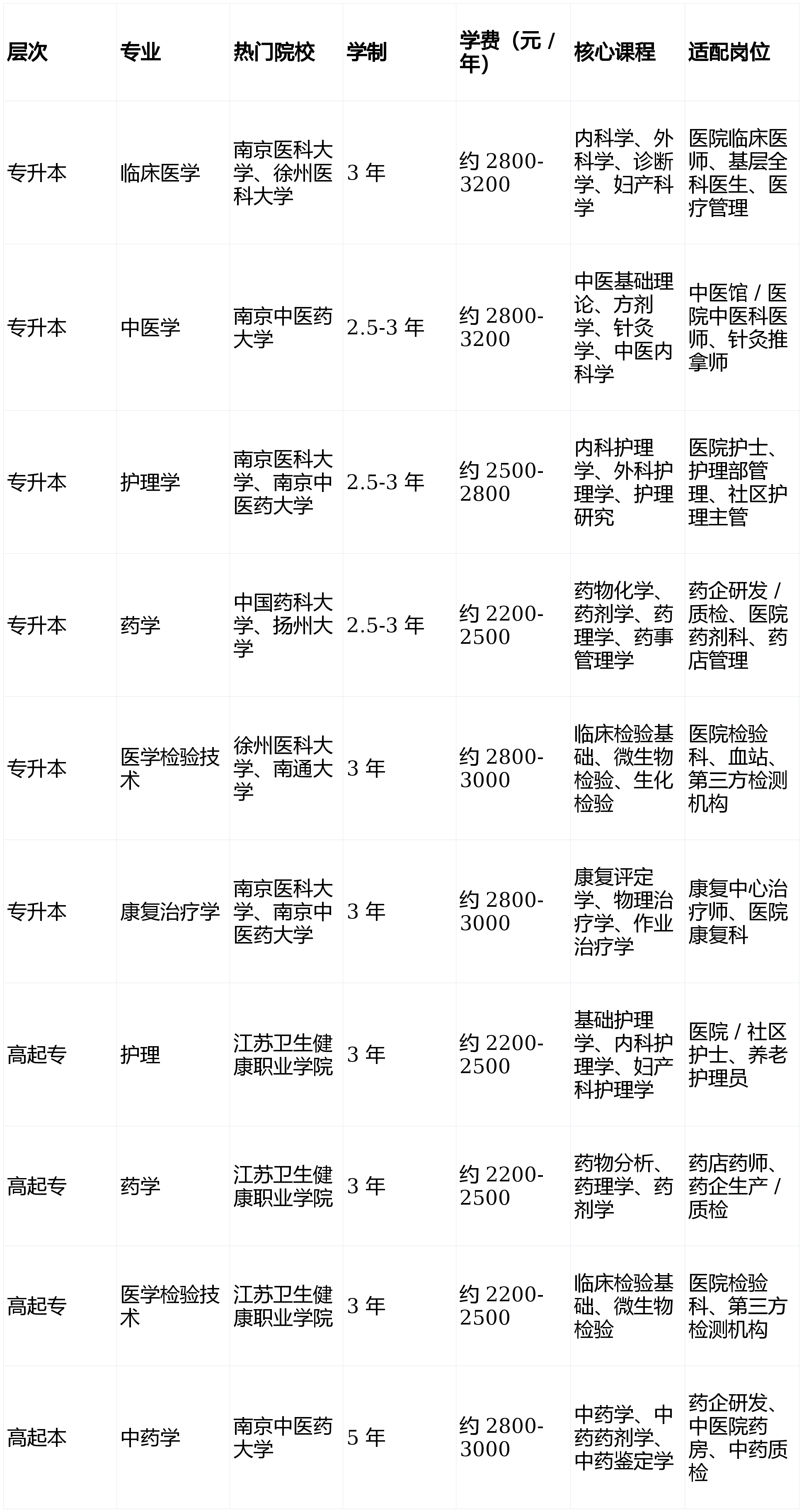 江苏成考医学类专业以专升本为主、高起专 / 高起本为辅,由南京医科大学、南京中医药大学等多所公办重点院校开设,聚焦临床、中医、护理、药学、检验、康复等方向,报考有严格执业资质与前置学历要求,且限户口 / 居住地报名,适合江苏医疗 / 卫生 / 医药行业在职人员提升学历、评职称或适配考证,学历学信网可查。